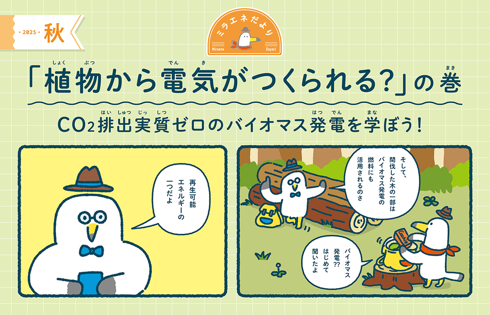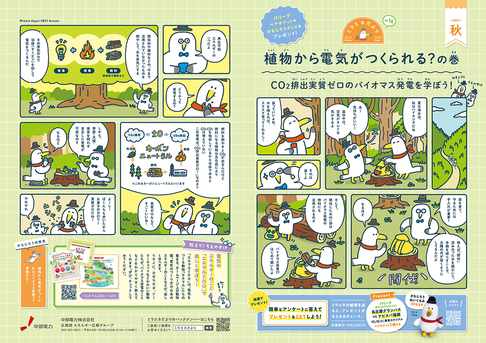 エネルギーのことを身近に感じ、未来のエネルギーを考えるきっかけにしていただきたいという想いで中部電力が発行している「ミラエネだより」。エネルギーにまつわる身近な情報をマンガで分かりやすくお届けしています。