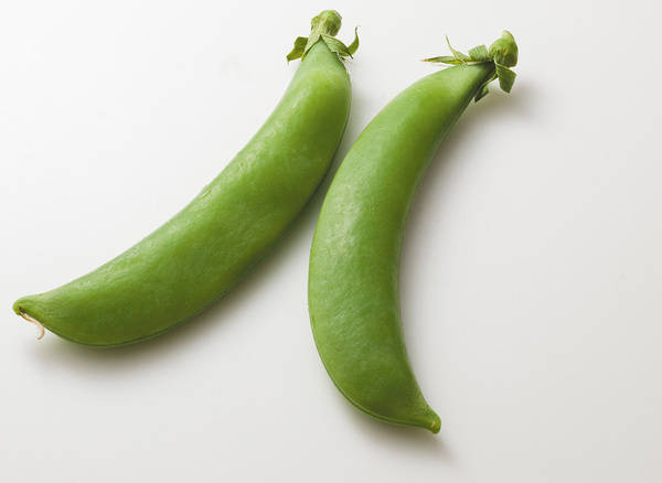 スナップえんどうはヘタと筋を取る。1の鍋の湯に塩少々を加えたらスナップえんどうを入れ、再沸騰してから1〜1分半ほど茹でたら水にさらし、水気を拭き取っておく。