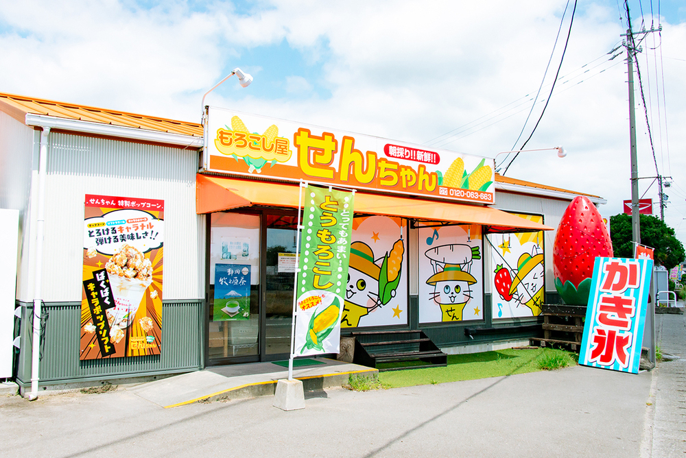 静波海水浴場のほど近く。国道150号線沿いにある「もろこし屋 せんちゃん」は、採れたての野菜やフルーツが手に入る直売所。店内には、とうもろこしをはじめとする自家栽培の野菜・フルーツから、静岡県内を中心とする農家から仕入れた商品がところ狭しと並びます。お店を手掛けるのは、お茶農家「ヤマセン」。3代目社長が大のとうもろこし好きだったということで、とうもろこしの栽培をスタート。最初はテント小屋での簡易的な販売だったといいます。それが瞬く間に評判を呼び、今のような店舗のスタイルに。そこから栽培数が増えていきました。