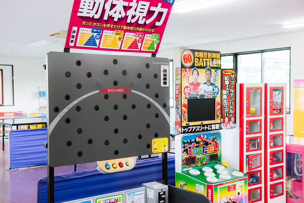 - 施設内には卓球台もあり、ラケット・球のレンタル込みで30分500円。ちょっとしたゲームコーナーもあり、雰囲気はまるでレトロなゲームセンター。野球の練習に疲れたら、ちょっと懐かしい気持ちにひたってみてはいかがでしょうか。