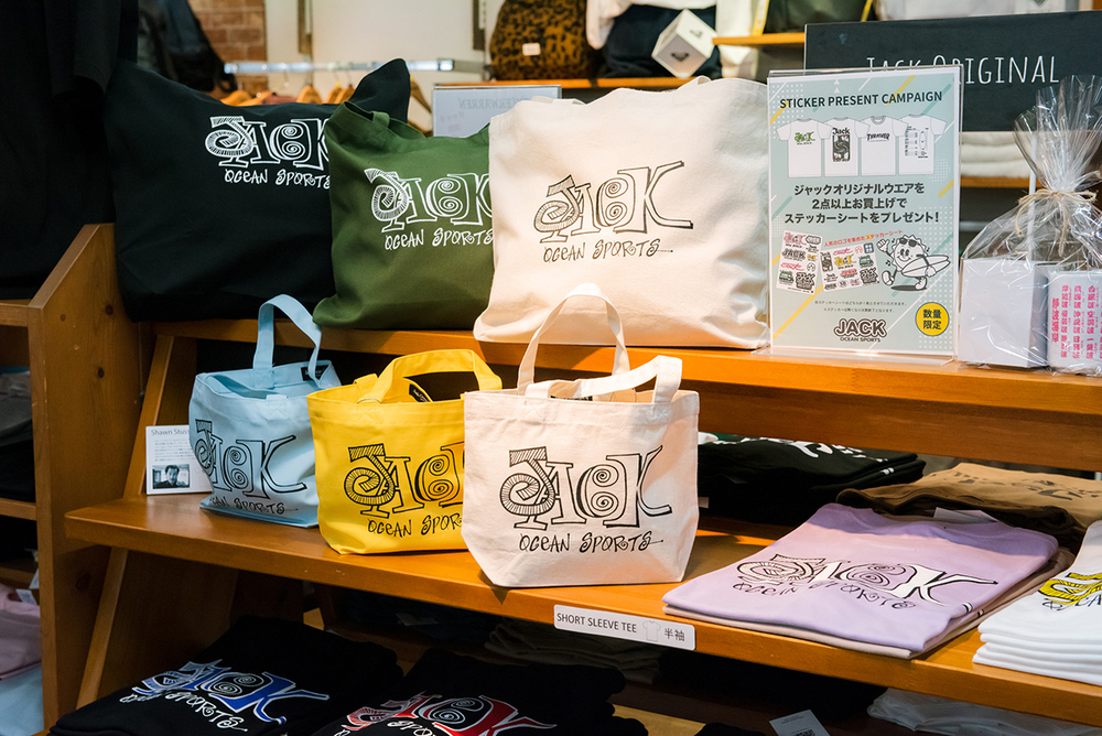 店頭ではステューシー氏がロゴをデザインしたというオリジナルトートバッグも販売しています。