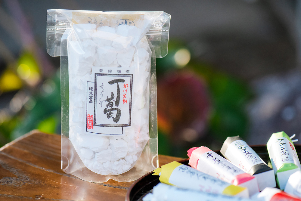 “掛川名物”として伝統の味を守り続ける「丁葛」は、葛湯のイメージを変えるラインナップで、健康・美容意識の高い方からも人気。葛湯というと、風邪や体調の優れないときに食べるイメージが残るものの、「桂花園」では変わり種も含め13種類を用意。「しょうが葛湯」や「ゆず葛湯」といった定番の他、牛乳でつくるとホットチョコレートのような味わいになる「ココア葛湯」や、「コラーゲン葛湯」「アロエ葛湯」「高麗人参葛湯」「すっぽん葛湯」といった美容・滋養強壮系、さらには「純金葛湯」といったゴージャスなものまで。100円台・1本からバラ売りで買えるのも魅力のひとつ。これは、“葛湯を体調不良のときだけではなく、日常のおやつとして気軽に味わってほしい”という想いがゆえ。繁忙期以外はおもてなしとして、ご来店いただくお客様に葛湯を召し上がっていただいています。購入時には、おいしい作り方・おすすめのアレンジレシピもいただけます。