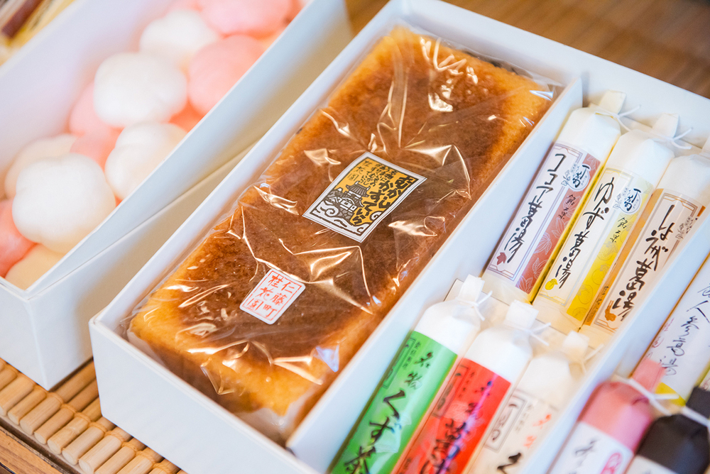- 「小夜乃梅」や葛湯・「昔かすていら」など「桂花園」の魅力をつめこんだ、贈答用のセットも種類豊富。ちょっとしたおみやげ・おもたせとしてはもちろん、人生の節目や大切なご縁を紡ぐ際の贈りものとしても最適。感謝の気持ちのお供として、歴史ある銘菓を選んでみてはいかがでしょうか。