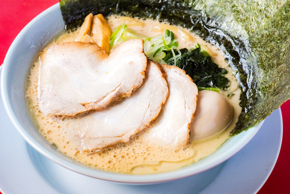 1番人気の「特豚骨醤油」は、味玉・ほうれん草・ネギ・メンマ・チャーシュー3枚・海苔5枚がトッピングされた豪華な1杯。コク深くミルキーなスープは、飲めば飲むほど食欲が湧いてくるような味わい。しっかりした味付けの豚骨醤油には、スープがよく絡む中太麺がおすすめ。麺かため・油多め・味濃いめのオーダーが一番人気とのこと。ライスをオーダーする人も少なくありません。