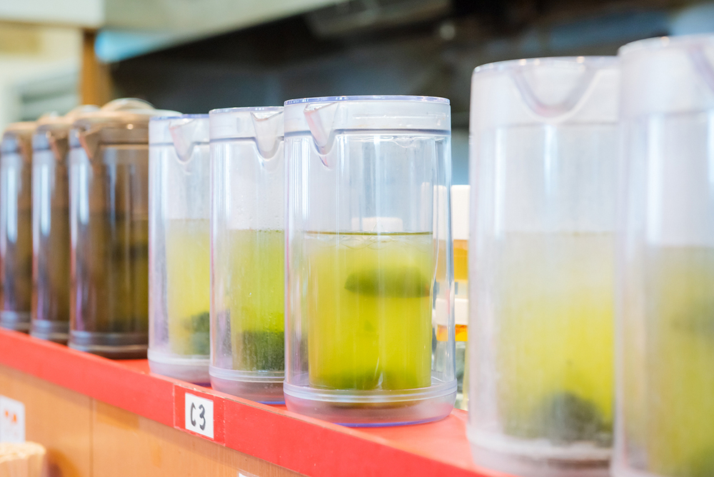 - セルフサービスの飲み物がお茶というのもさりげなくうれしいポイント。オーナーはお茶屋業も営んでいるということで、質の良いお茶でサッパリしめられます。
