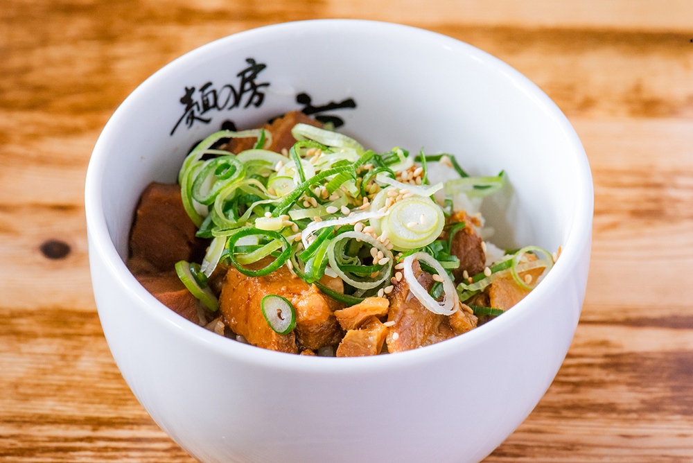 ラーメンとセットでオーダーする人が多いというのがこの「豚まんま」。リーズナブルな値段にもかかわらず、チャーシューの切り落とし部分が贅沢にゴロッと載っています。味の秘訣はチャーシューのタレ。ごはんにほどよくタレが絡み、さらに食欲をそそります。