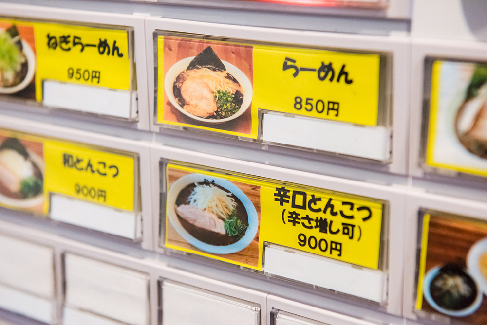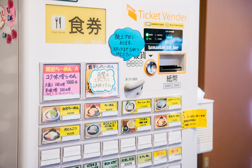 - また、ファンの間で密かに人気だというのが「辛口とんこつ」。豚骨ベースに台湾の秘伝の調味料を加えており、中にはもうこれしか頼まないリピーターもいるほど、中毒性のある一杯に仕上がっています。他にも、毎月限定のラーメンが登場。味噌、塩、つけ麺、家系など、その種類はバラエティ豊か。「麺の房 味わい亭」は食券スタイル。どんな味に出合えるか、券売機をチェックしてみてくださいね。