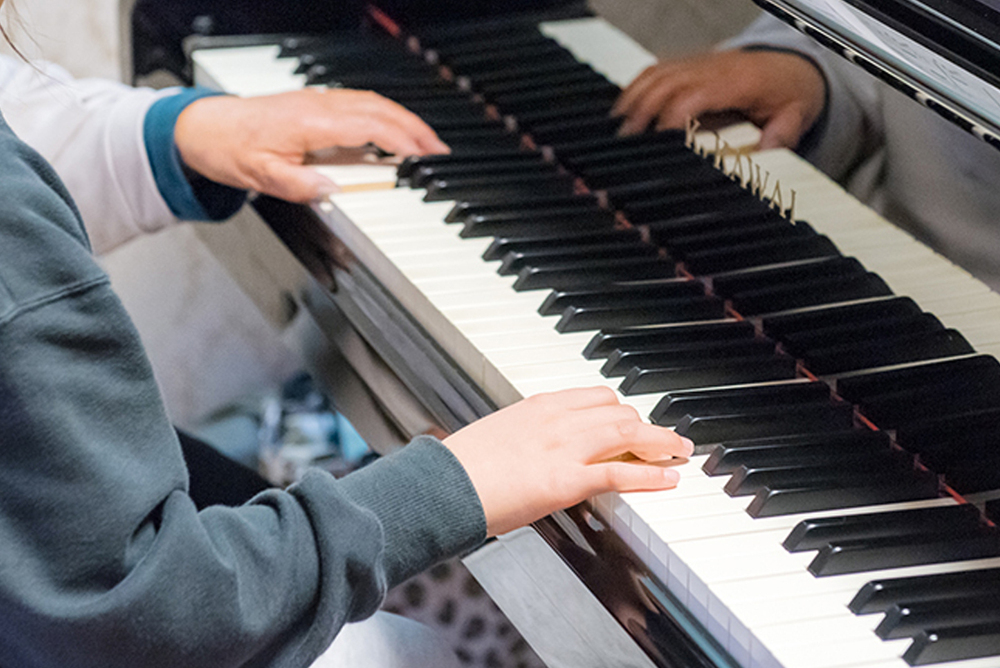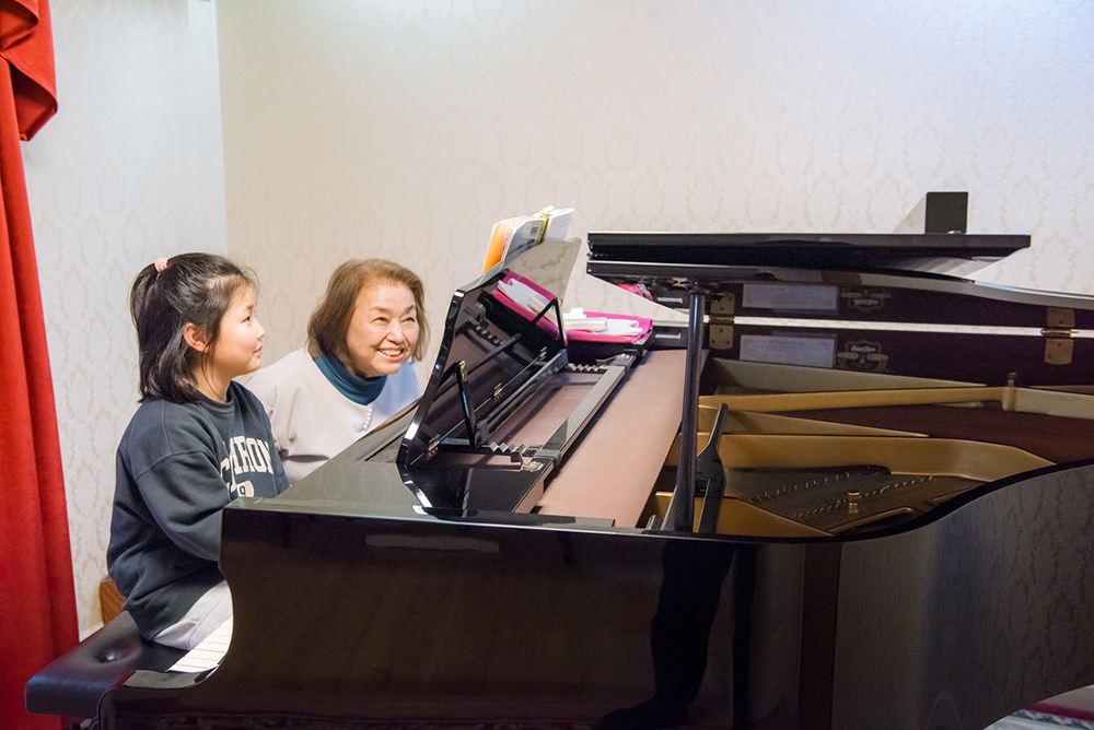 習いごとの定番であるピアノは、幼稚園から小・中学生を中心に大人気。毎週1回のレッスンを楽しみに、生徒が入れ替わり立ち替わり訪れます。レッスンは1回30分ほど。楽譜の読み方や指使いなど、基本を大切にしつつ、音楽を楽しむことを伝えます。年に1回は生徒合同の発表会も行っているそうで、生徒の多くはその目標に向けて練習に励みます。
