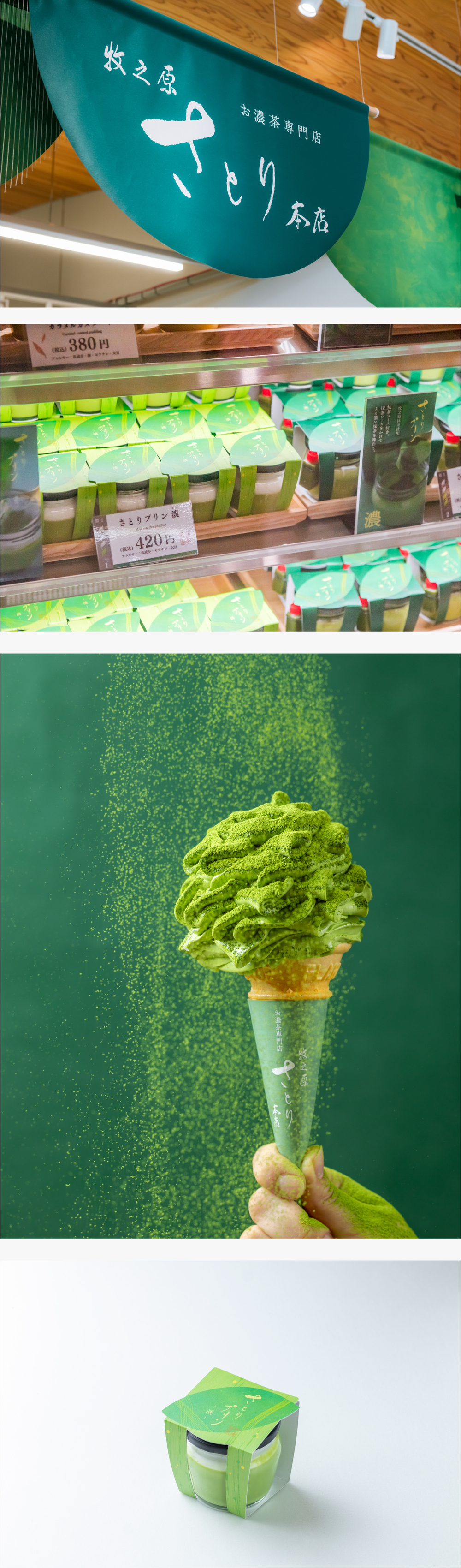 「牧之原さとり本店」は、牧之原産抹茶を使ったお濃茶スイーツ専門店。“お濃茶(おこいちゃ)”の名の通り、牧之原産茶葉から作られた濃厚な牧之原抹茶を使ったオリジナルのソフトクリームやクレープが人気です。中でもインパクト大なのが「お濃茶ソフト 抹茶かけ」。リボンのように何層にも折り重なったソフトクリームの上からさらに抹茶パウダーをオン。抹茶本来の魅力がガツンとくる一品です。家族へのお土産にはプリンもおすすめ。「さとりプリン 淡」は抹茶と生クリームの2層になっており、ミルキーでより濃厚な魅力を味わえます。