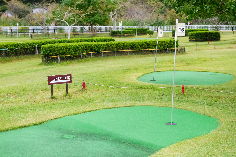 マレットゴルフ場の当日利用は管理事務所で受付。1プレイ18ホールで、ひとり400円(御前崎市内利用者は200円)、クラブ・ボールの貸出は100円とリーズナブル。基本は4人1組で楽しむということで、ぜひ家族や仲間で汗を流してみてはいかがでしょうか。