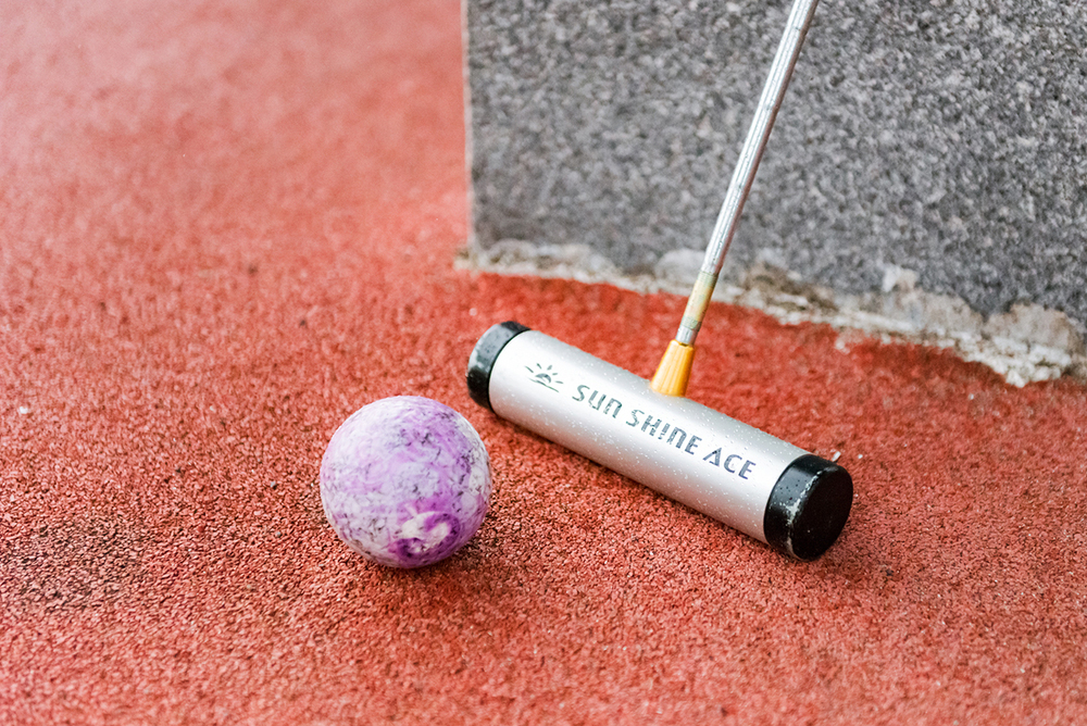 - さらに注目なのが、マレットゴルフのコースがあるということ。これは「マレット」と呼ばれるクラブと少し大きめなボールを使い、より少ない打点を目指してホールを回るという、日本生まれのスポーツ。この「おさ川ふれあい公園」には完成当初からあり、今では子どもからお年寄りまで、幅広い層が楽しんでいます。特に70〜90代の愛好家が多く、この地域の70名が参加しているクラブ活動もあるんだとか。毎月定例大会も開かれるほどで、このマレットゴルフをきっかけに仲間ができたり、健康が維持できたり。中には年間200日ほど公園に通い、練習に勤しむファンもいるそうで、まさに、地域にとって欠かせない健康公園となっています。