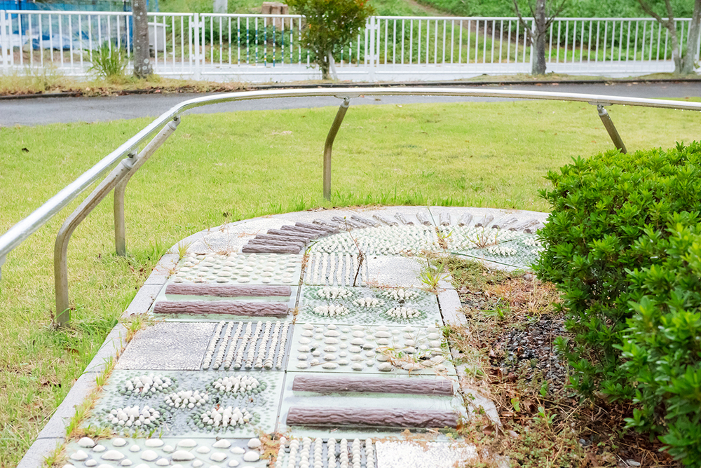 - また、健康増進を目的として、背中伸ばしができる器具や、裸足で歩けるデコボコ舗装の小道もあります。