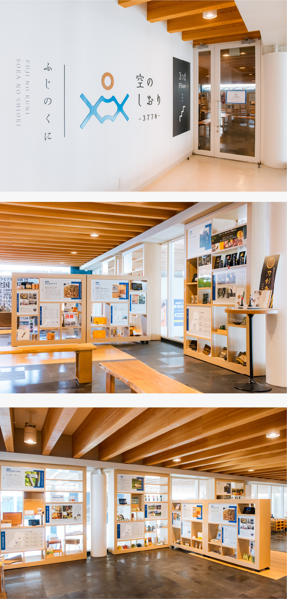 「ふじのくに 空のしおり -3776-」は、富士山静岡空港の旅客ターミナルビル3階にある見学無料のショールーム。日々、国内外さまざな旅行客が行き交うこの場所で、多様な静岡の魅力を発信しています。2025年4月にはさらに魅力的にバージョンアップ。“これぞ静岡”といった定番から、地元出身者でもなかなか知らないコアな魅力まで、幅広く紹介。展示内容も定期的に入れ替わり、つねに新しい発見ができます。